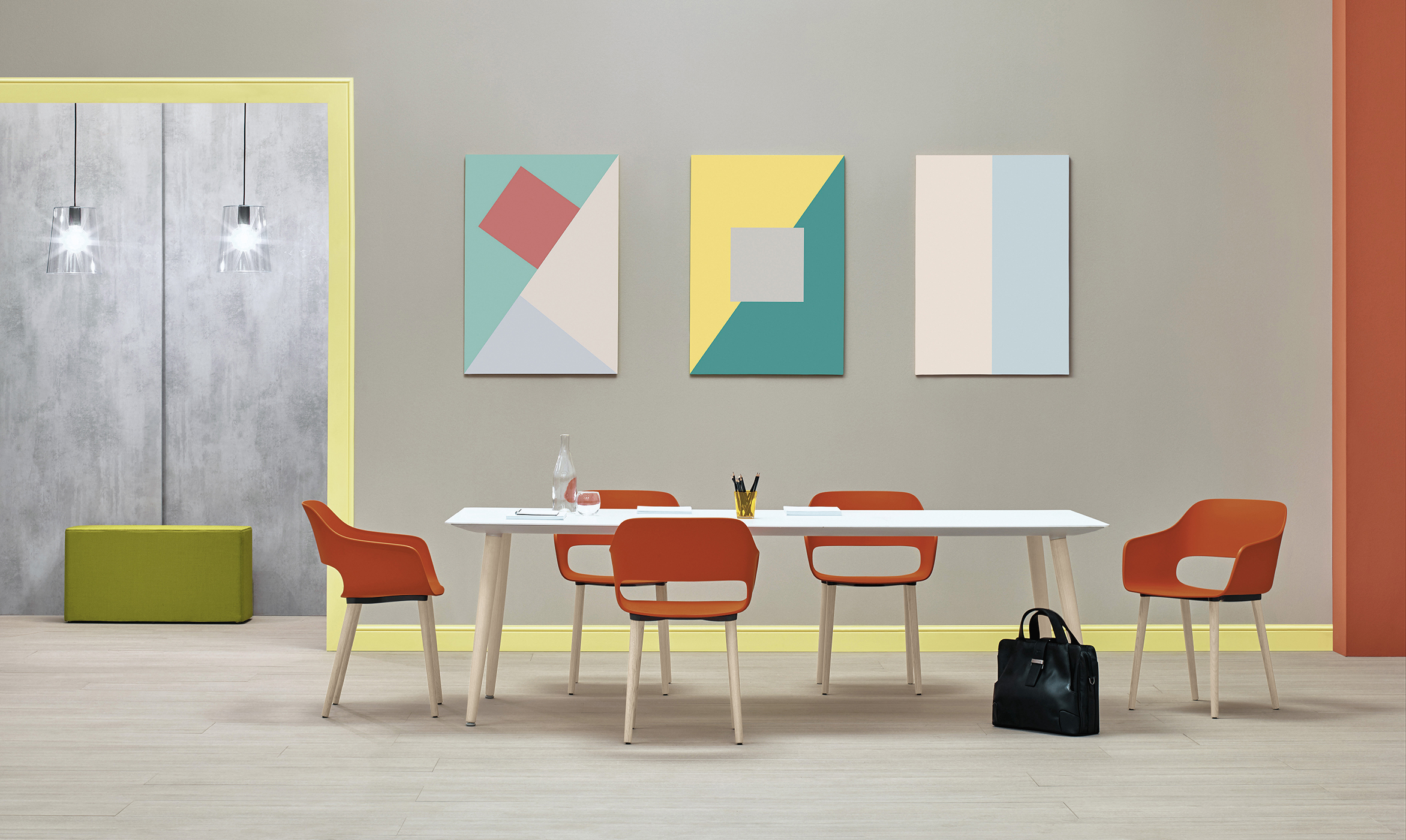 El esquema decorativo es con respecto a la arquitectura y las espectaculares vistas de Madrid. Para hacer el estudio, Cuarto Interior ha creado un proyecto temporal, simplemente “recién aterrizado” en el edificio y diseñado para mejorar las vistas sin entrometerse. El mobiliario, vintage e industrial, está listo para los visitantes, nunca mirando hacia la vista de la ciudad. Los faroles y las mesas están iluminados por Vondom y contribuyen al disfrute visual del espacio.