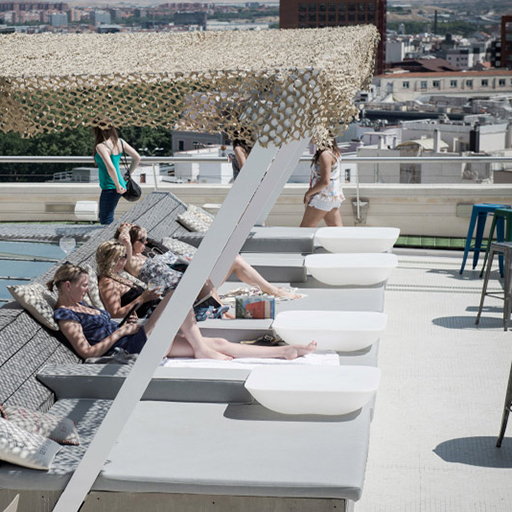Establecida en la Azotea del Círculo de Bellas Artes, uno de los centros de arte más importantes de Europa, “La Azotea del Círculo” es un espacio culinario único en un lugar acomodado famoso por ser uno de los mejores miradores de la capital. de Madrid. Las mesas PILLOW iluminadas de Stefano Giovanonni se suman a la estética visual del espacio. Por la noche, la iluminación de la terraza cambia a un brillo más tenue, lo que permite que el horizonte de la ciudad ocupe un lugar central como punto focal de las vistas.